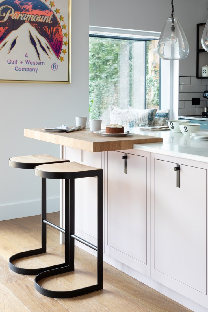 Alongside social seating around an island or