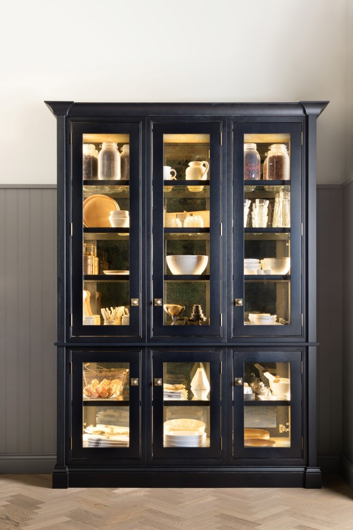 Glazed cabinets are a beautiful alternative to open shelving if you aren't looking to fully commit to an open aesthetic. They create the same break from continuous closed cabinets and offer an equal opportunity for a tailored display, with your prized possessions behind an elegant glass-fronted door for a classic, refined look.