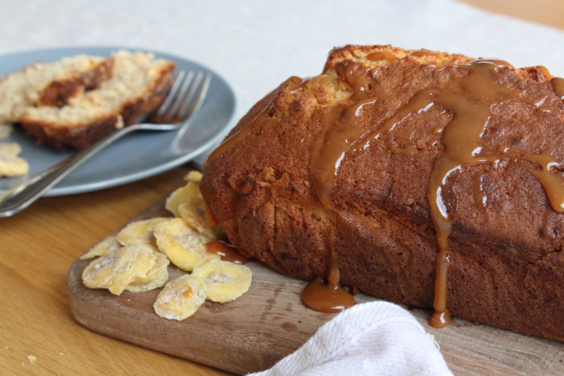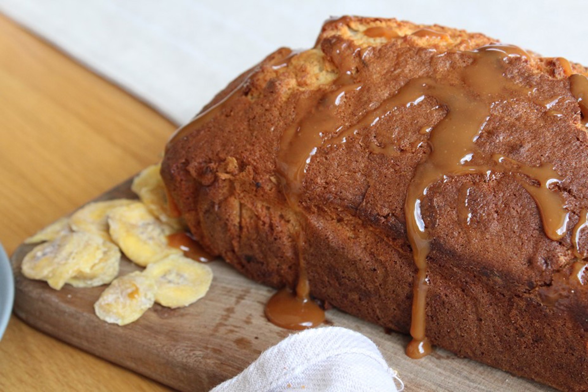 Drizzle your caramel across the top of your loaf then cut thick slices to serve!